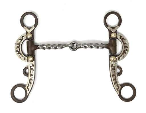 AJ TackThe AJ Tack Argentine Engraved Sweet Iron Twist Snaffle Bit is a practical and well-crafted tool for riders. Designed in an antique brown finish, t...