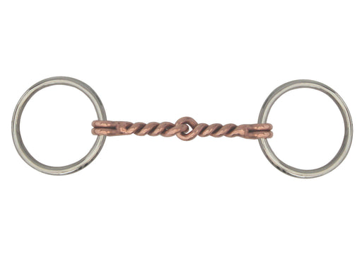 View full detailsAJ Tack Loose Ring Sweet Iron Twisted Copper Snaffle Bit - Mini/Pony