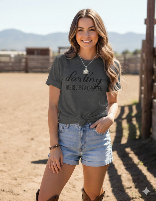View full detailsDarling This Is Just A Chapter Graphic Tee | Premium Bella + Canvas 3001 Dark Heather Grey | Inspirational Mental Health Western T-Shirt | Rowdy Rowels Empowerment Top