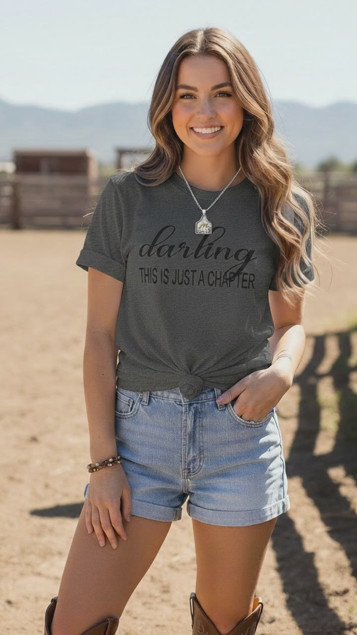Darling This Is Just A Chapter Graphic Tee | Premium Bella + Canvas 3001 Dark Heather Grey | Inspirational Mental Health Western T-Shirt | Rowdy Rowels Empowerment Top