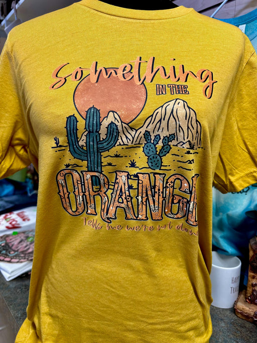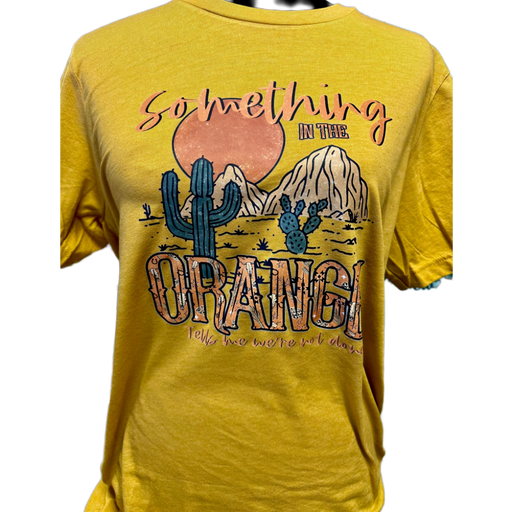Something In The Orange Western Graphic Tee; Soft, Comfortable Blend by Bella Canvas - Heather Mustard [52% Cotton, 48% Polyester]