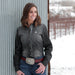 This women's long sleeve button down by Cinch is a vintage black denim color with snaps.