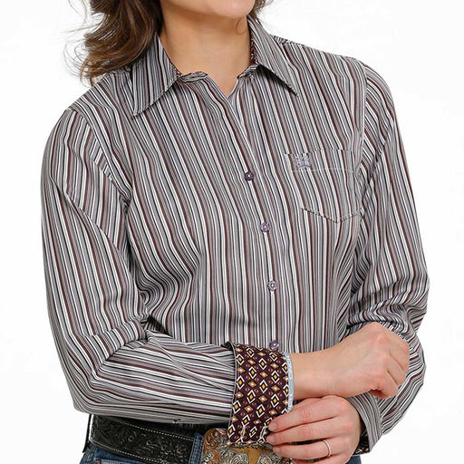 Summerdale Western StoreCinch Women's purple, burgundy, white pin stripe long sleeve button up #MSW9164193