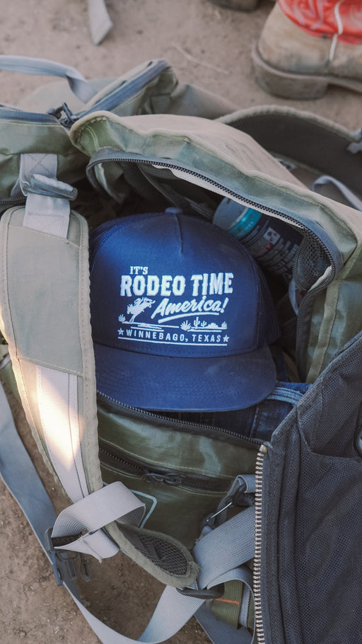 Dale Brisby's Rodeo TimeIt's Rodeo Time all the time Ol' Son! So you better get a cap that lets 'em know. You ain't no cowboy if you don't! OSFM Snapback closure Meshback