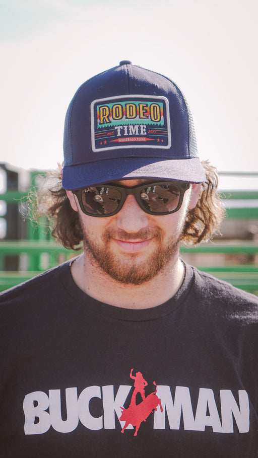 Dale Brisby's Rodeo TimeIt's Rodeo Time all the time Ol' Son! So you better get a cap that lets 'em know. You ain't no cowboy if you don't! OSFM Snapback closure Meshback