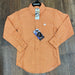 Cinch boy's long sleeve button up orange shirt with white design
