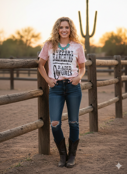 Rodeo Hard WearLegacy in Every Stitch. Celebrate the grit and grace of the American West with our "Support Ranching, Raise Cowgirls" Tee. This isn't just a shirt;...
