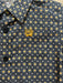 This navy infant boys' button-up features vibrant orange star-like designs for a fun, stylish look.